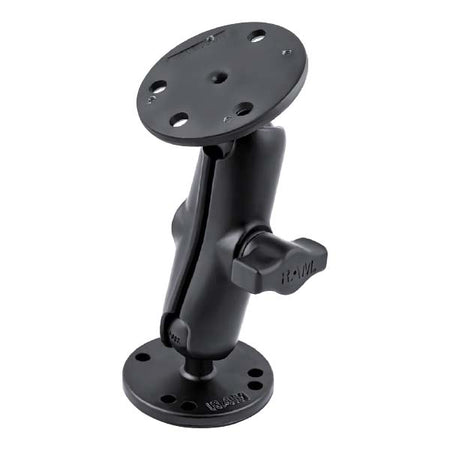 Composé de deux bases rondes de 2,5 pouces de diamètre, dotées du gabarit de perçage universel AMPS et d'un bras à double embase de longueur standard. Trois vis mécaniques n° 8-32 x 3/4 PH PD et trois écrous Nylock SS n° 8-32 sont inclus pour fixer le RAM-B-101-RYM1 à tous les sondeurs/GPS Raymarine Dragonfly. Ce support est doté d'un système breveté de rotule en caoutchouc RAM de 1 pouce de diamètre, doté de points de réglage aux deux extrémités du bras à double embase, permettant un réglage quasi infini et des angles de vision parfaits. Ce montage est réalisé par perçage.
