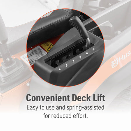 Compact and Easy to Store: Features a chute-up width of 50 inches and a convenient deck lift for quick adjustments.